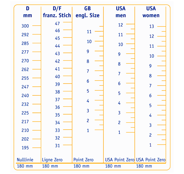 Größentabelle für Herren: