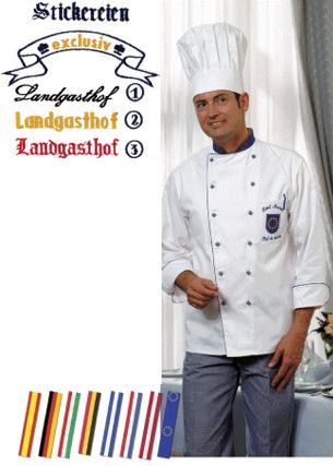 | Berufsbekleidung Stickerei Service - Besticken von Kochjacken, Schürzen, Blusen, Hemden, Polohemden, Sakkos, etc. | Weiter zu: Aufnäher |